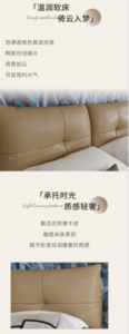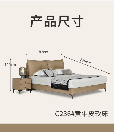 High-end, elegant, modern, light luxury genuine leather king-size bed, Italian minimalist style, double storage bed, solid wood frame bed.